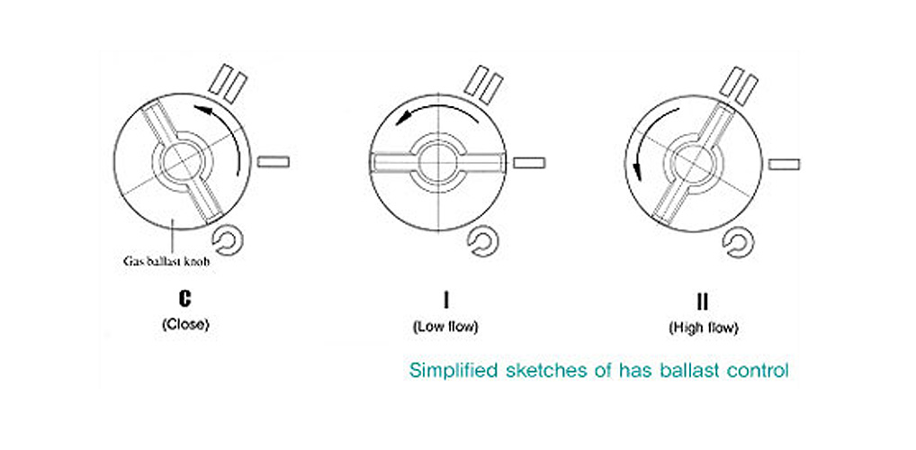 | Ultimate pressure | Gasballast C | Torr | 5x10-3 | 5x10-4 |